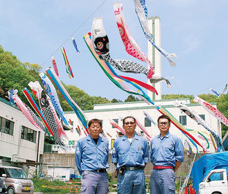 町のゴミ処理施設である同プラントでは、町民から鯉のぼりの持ち込みがある。不要になったものとはいえ、家庭で大切に保管されていることが多く、状態の良いものが多かったという。これを「何か利用できないか」と、同プラントに勤務する菊地原正美さんが中心となって3年前からリサイクル鯉のぼりを上げるようになった。