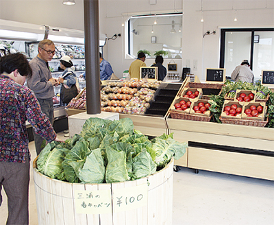 注目は、付帯施設として地場産野菜・生鮮品・お土産品を集めた「横須賀湯楽(ゆら)市場(いちば)」を設けたところだ。農産物については三浦半島産を中心に、概ね神奈川県産を、海産物は魚介類の加工品などが並ぶ。「温泉と休憩だけでなく、横須賀の独自色を打ち出した。道の駅のように活用してもらいたい」と同社。