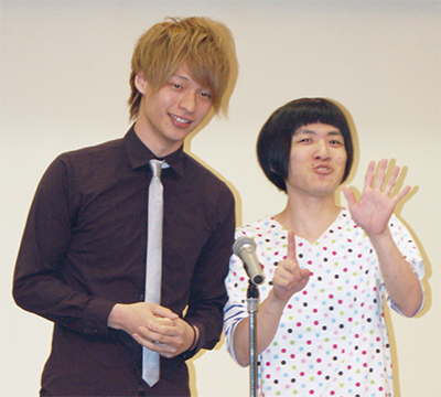 今回のライブから、新たにレギュラーに加わった二人。ボケ担当・加藤渉さん(関東学院大4年=写真右)は地元横須賀・山科台に在住。ツッコミ担当の巴山(ともやま)昌博さん(成城大4年=写真左)と共に民放テレビ番組へ出演し、注目を浴びている。