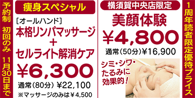 一番人気の本格リンパマッサージ「プラーナ」に、”即効痩身の近道”「セルマシーン」のケア付コースが、6300円で体験可能。