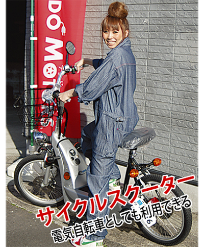 人気は自転車タイプのサイクルスクーター(=写真)。ハンドル横の切り替えスイッチを操作することでバイク、電動自転車の双方の利用が可能となる。価格も4万8千円〜と手頃。スクータータイプなら14万5千円。高い登坂性能があるため、通勤や買い物の足として年配者や主婦層に利用が広がっている。「DENDO MOTORS」では、常時20台の電気スクーターを陳列、試乗車も用意している。「操作は簡単。静音で排気ガスもなし。一度試してみて」と福田貴志店長。問い合わせは【電話】046・874・5681