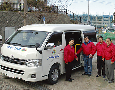 運行するのはNPO法人「ふぉーらむ」と、周辺7自治体で昨年立ち上げた「ハマちゃんバス運行協議会」。浜見台と追浜の「浜」から「ハマちゃん」と命名した。これらの地域は高台にあり、道幅が狭く路線バスも通れない。交通の便が悪く、車を持たない住民が「足」を確保するのが難しかった。買い物には追浜駅周辺の店を利用する住民が多いが、同駅まで徒歩20分。途中200段の階段もある。