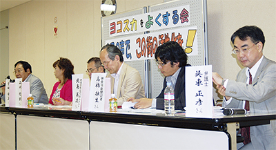 横須賀市が抱える難問の1つである「人口減少」をテーマに、現状認識と対策を探る市政シンポジウムが今月8日、汐入の産業交流プラザで開かれた。各分野の代表者が、それぞれの立場で感じている危機意識などを述べた。市民グループ「ヨコスカをよくする会」の主催。約50人が参加した。