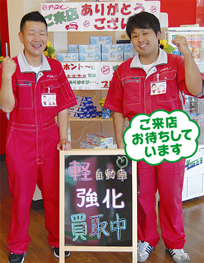 「長年乗った愛車はもちろん、軽自動車、軽トラック、輸入車までプラス査定します!買換えをご検討中のお客様はぜひ一度ご相談ください」と高取店長。この機会に来店してみては。