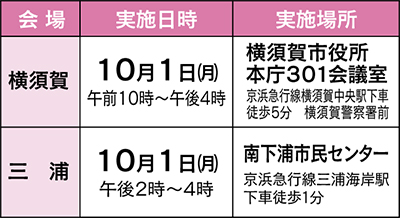 県内の司法書士と司法書士法人が所属する「神奈川県司法書士会」(蒔山明宏会長)は10月1日の法の日を記念して県内各地で「無料法律相談会」を開催する。