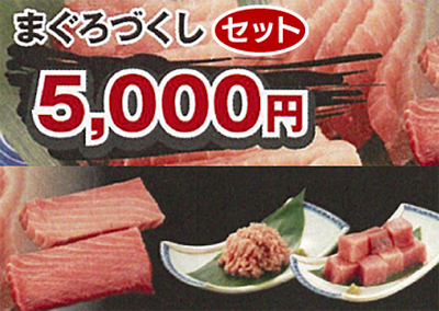 24日(土)からまぐろづくしの「お歳暮セット」も販売開始。たたき、角切り、中トロ、大トロなどの贅沢な組み合わせで、3千5百円、5千円、7千円の3種ある。