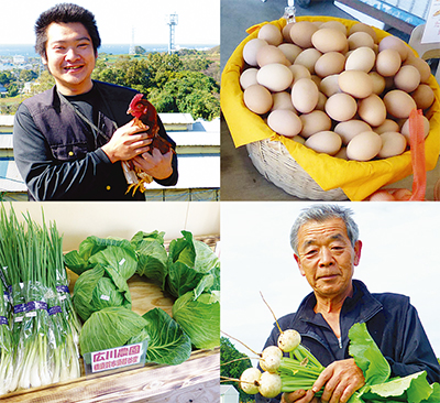 初めての試み。養鶏場を営む岩沢ポートリーの岩澤直勝社長が、地域の農家と地産品を使った商品開発に意欲的な事業者に参加を呼び掛けた。新鮮なたまごや路地野菜のほか、厚焼きたまごなどの惣菜類も用意。市場に乗らない規格外の品は格安で販売する。