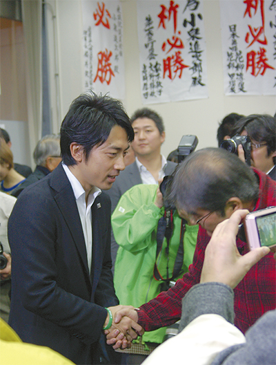 3年前の衆院選では自民党や世襲に対する批判にさらされた小泉氏。今回は青年局長として、全国遊説に多くの時間を費やす選挙戦だった。17日に更新したブログによると、22都道府県、60選挙区の応援に出向いたという。それでも、地元で磐石の支持を受けて勝利。この日の会見後、支持者らと握手を交わす際には表情も和み、写真撮影にも笑顔で応じていた。