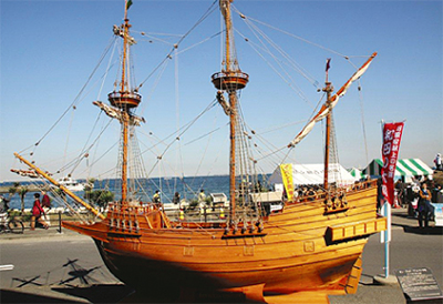 浦賀港で明日27日(土)、日米修好通商条約の批准書交換ため浦賀から出航した「咸臨丸」の偉業を称える「第15回咸臨丸フェスティバル」が催される。主催は咸臨丸フェスティバル実行委員会。今年は同フェスタで初めて伊東市所有の「サン・ヴェナ・ベンツーラ号」の模型(5・35m=写真)展示がされる。同号は按針が1610年、徳川家康の命で伊東で造った帆船。浦賀からメキシコに渡るなど、ゆかりがある。