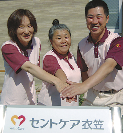 市内平作の閑静な住宅街にある一軒家から賑やかな笑い声が聞こえてくる。そこは介護サービス事業を全国展開しているセントケアグループの通所介護施設「セントケア衣笠デイサービスセンター」だ。開所から8年。1日平均35人が利用し、「毎日でも通いたくなる」と評判の高い同センターの魅力とは何か。施設管理者の清水弘子さん(=写真中央)に聞いた。