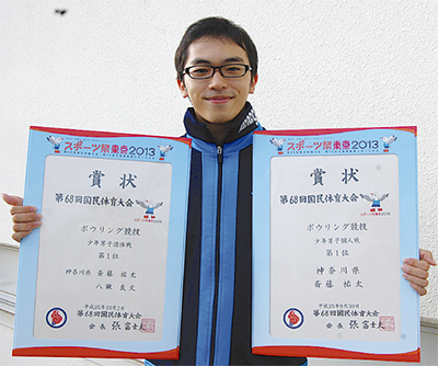 県立横須賀工業高校のボウリング部に在籍する斎藤祐太君が、先月29日から都内で行われた国民体育大会(国体)に県の代表として出場。少年男子個人の部で大会新記録を出し優勝した。