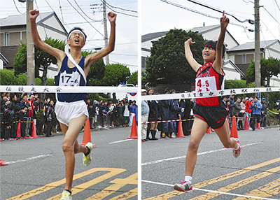 横須賀市中学校駅伝競走大会が10月19日、国道16号馬堀海岸線の区間コースで行われた。女子は5区(11・54Km)、男子は6区(15・9Km)。全24校の代表男女計286人が力走。女子は池上中が優勝し、大津、久里浜と続いた。男子は大津中が優勝、次いで浦賀、久里浜の順。気温16度で肌寒い中、沿道には家族や仲間など約5000人が応援に駆け付けた。