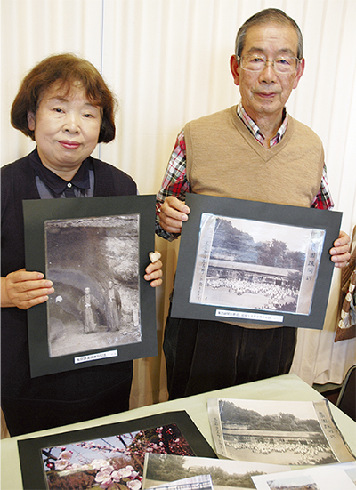 きっかけは、数年前にコミュニティセンターで催された「追浜を知ろう」という講座。「学んだだけで終わるのはもったいない」と、有志で集まりサークルを結成した。「長年住んでいるのに知らない場所・知らないことが多かった」と、メンバーの渡辺泰次さん=写真右=は話す。街歩きや街角の写真撮影などを重ねるうちに、昔の写真もたくさん集まってきたという。そこで、追浜の街の姿を、明治から現在まで写真で辿る展示会を企画した。