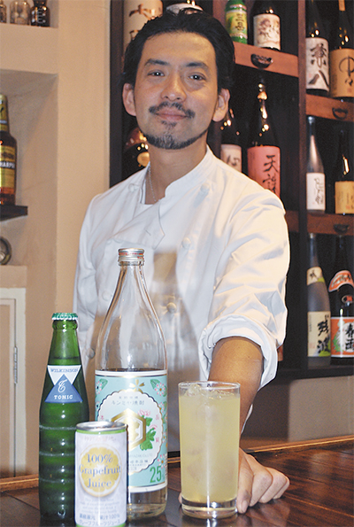 芸術劇場や軍港めぐりを目当てに他県から多くの観光客が訪れる汐入地区。商業・娯楽施設も充実しているが、滞在時間が短く、夜間の集客に繋げることが難しかった。そこで、夜の名物に新カクテルを考案。船の修理施設(乾ドック)を抱える土地柄と、「汐入」とソルト(塩)をかけて「汐入ソルティドック」と名付けた。同カクテルの発案者で、自身も創作レストランを営む松田一希さん=写真=は、「汐入へ足を運び、回遊してもらうきっかけにしたい」と意気込む。地域の飲食店に加盟を募り、来月から提供予定。