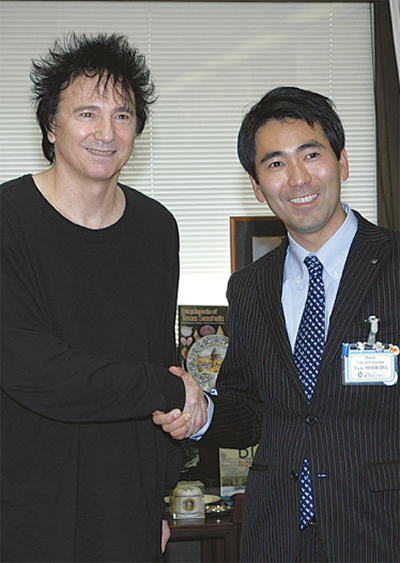 2年前から奥さんの出身地である横須賀に暮らしながら、世界を股にかけ精力的に活動をしている。テリー氏は自身が所有する巨大ドラムセットの展示企画やチャリティ音楽教室の開催を市長に提案。「音楽で横須賀を盛り上げましょう」と呼びかけた。