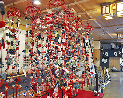 西浦賀にある特養ホーム「太陽の家二番館」でつるし雛=写真=が利用者の目を楽しませている。雛祭り気分を味わってもらおうと、市内のボランティアグループ「おこげの会」が協力し、約1年かけてすべて手作りしたもの。利用者からは「綺麗」「(ちりめん細工が)懐かしい」などの声が寄せられている。展示は3月9日(日)まで。(問)同ホーム【電話】046・841・2088