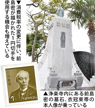 ”郵便の父”として知られ、横須賀でその生涯を閉じた前島密(ひそか)。没後95年記念事業として、胸像を乗せた郵便ポストが同氏の眠る浄楽寺(芦名2の30の5)の一角に設置される。「日本文明の一大恩人前島密翁を称える会」が計画し、日本郵便株式会社などが協力する。