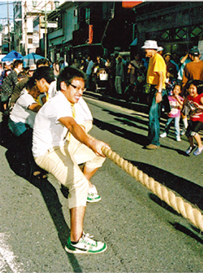 目玉は子どもからお年寄りまで参加できる「ストリート大綱引き大会」=写真。町内会以外の当日参加も受け付けており、今年は海上自衛隊や米海軍基地から力自慢たちが初参戦し大会を盛り上げる。このほか、各町内会主催の模擬店やスイカ割り、パトカー・白バイ体験など盛りだくさん。