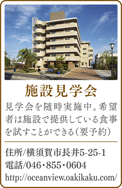 横須賀西海岸の景勝地に位置する介護付有料老人ホーム「オーシャンビュー湘南荒崎」(横須賀市長井5の25の1)では、施設入居者を募集している。