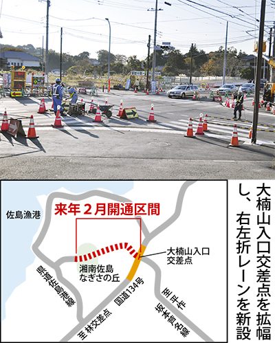 佐島地区から平作を経由し、市内中心部へ向かう市道「佐島の丘通り線」「坂本芦名線」の整備が進んでいる。県道佐島港線から国道134号線を経由する従来のルートに比べ、5分ほど所要時間が短縮する見込みで、開通は来年2月中旬を予定している。