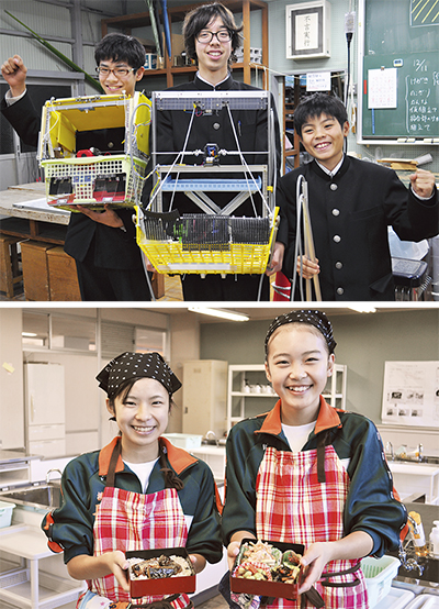 中学生が授業や部活動で学んだものづくり学習の成果を発表する「第15回全国中学生創造ものづくり教育フェア」。来年1月24日(土)・25日(日)に行われる創作ロボットと弁当部門の全国大会に、長井中学校(渡辺正校長)の科学部と家政部の生徒が揃って出場を決めた。