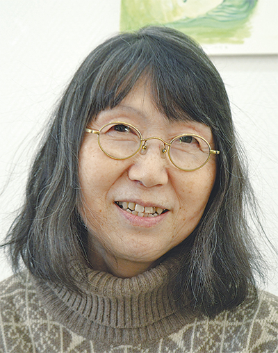 ○…「ひょっこりひょうたん島」の脚本に憧れ、会社を早期退職した後、人形劇団ひとみ座に入団。そこで片岡氏と出会い、結婚した。余生をのんびり過ごそうと、8年前に秋谷へ移住。自然豊かなこの地は、作品のインスピレーションの源になっている。感傷的に書き殴っていた詩も、最近になってようやく前向きになってきた。遺された作品と共に悲しみを乗り越え、これからも言霊を紡ぎながら懸命に生きる。