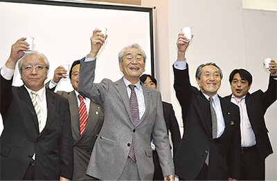 知事選は、現職の黒岩祐治氏(自民、公明、民主、元気会推薦)が219万5764票で圧勝。新人の岡本一氏(共産推薦)を大差で引き離した。