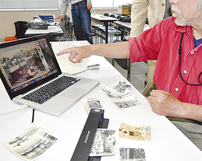10日には、アプリ開設のキックオフ企画として、今昔の写真を集める交流イベントが総合福祉会館で開かれた。この日、持ち寄られた写真は約100点。その場でデータ化された資料をスクリーンに映し出し、当時の雰囲気に思いを馳せたほか、看板から読み取れる情報などを頼りに時代考証を行った。相澤社長はこうしたイベントを今後、地域単位で開いていくという。