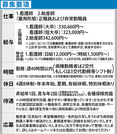 高校卒業後、別の専門学校に通っていた中で「人の役に立ちたいという想いが募っていた」と話す岩間小侑里さん。「地元で学べるなら」と、うわまち病院に隣接している横須賀市立看護専門学校へ進路を変更した。「実習でも学んだこの病院で貢献できれば」と同院へ。3年目の今年、新人指導も担当する。教えることで、自分の技術研鑚にもつながっていると感じている。「新人からベテランまでひとつのチーム。経験に応じて、スキルアップできる教育体制も整っています」。同院では、研修や実習など、きめ細やかなサポートで自信をつけていく。