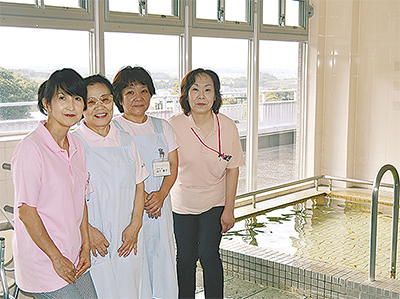 武の山々を望むケアハウス「あっとホーム」は、社会福祉法人「栗山会」が平成8年に開設。入居一時金が不要なのが特徴で(後に返金される預り金は必要)、47室の居室には、トイレや電気調理器・エアコン、緊急コールなどが設置されている。介護が必要になった場合は、外部の訪問介護などの在宅福祉サービスを利用できる。栗田栄子施設長は「施設内で季節ごとに行われる催し物や、武の山々を見下ろせる浴場が利用者から人気です。夫婦部屋の用意もあるので、お気軽にお問い合わせを」と話している。