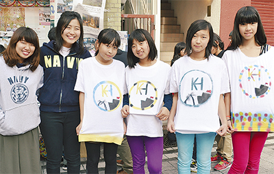 市立明浜小学校6年3組の児童が自分たちで製作した「くりはまTシャツ」を13・14日の両日、どぶ板通りで披露した。400円で引き取りにも対応し、約40枚を配布。久里浜の海をイメージしたペイントで、鮮やかな色合いが訪れた人々の目を引いた。
