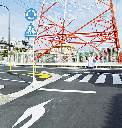 欧米では積極的に導入されているという、ラウンドアバウト。円形の交差点内では「車両は右回り(時計回り)で走行」「通行は徐行」という通行規則がある。交差点進入時(左折時)に一時停止の標識はないが、ロータリー内から希望する道路に出る際は、左折のウィンカー表示が必要だという。逆回りの進入やロータリー退出時の表示を怠ると違反になる。