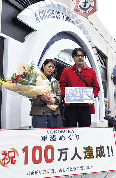 横須賀の人気観光スポットとなっている「YOKOSUKA軍港めぐり」の乗船者が13日、100万人を突破した。日米の艦船が浮かぶ横須賀本港を船でめぐる国内唯一の軍港クルーズ。2008年9月の運航開始時に年間5万人だったものが、現在18万人と大きく数字を伸ばしている。