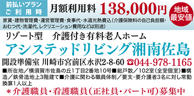 相模湾を望む横須賀市佐島の丘に4月1日(金)、介護付き有料老人ホーム「アシステッドリビング湘南佐島」がオープンする。