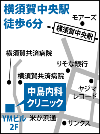 ■中島内科クリニック 米が浜通1の17YMビル2階/午前9時から12時、午後2時から5時/木曜午後・土曜午後休診/【電話】046・829・1091