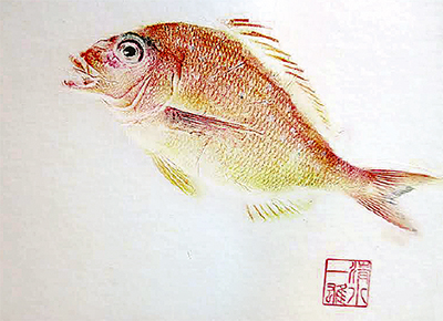 鯛や鮎などを用いて作られた魚拓の展示会が7月9日(土)・10日(日)、「珈琲倶楽部オアシス」(長坂3の6の33で開かれる。同店オーナーの清水一雄さんがこれまでに手掛けた作品のほか、約20点が展示される。