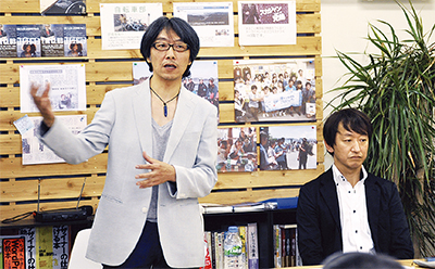 横須賀の魅力を映画という手法で発信していくプロジェクトがいよいよ動き出す。先月27日、横須賀在住の映画監督、矢城潤一さんがメガホンを取る「スカジャン兄弟(ブラザーズ)」の事業説明と資金協力を求める説明会が小川町のヨコスカテラスで開かれた。10月に撮影を開始し、来年6月の上映を目指す。 構想から3年半。製作を進めるための組織が固まり、着手できる環境が整った。事業運営を手掛ける「映画スカジャン兄弟製作(株)」の社長には、矢城監督の実弟である八木達也さんが就いた。