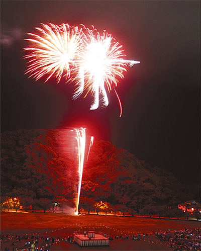 駐屯地内のグランドを一般開放し、中央に大きな櫓(やぐら)を設けて、盆踊りや久里浜太鼓の演奏、演芸ショーなどを楽しむ。飲食屋台なども多数出店する。祭りのフィナーレを飾るのは、夜空を焦がす約200発の打ち上げ花火=写真。間近で眺める迫力は見ごたえ十分だ。