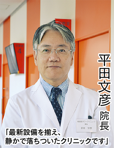 平田院長は動脈硬化学会の評議員であり、心筋梗塞や脳梗塞などの動脈硬化疾患予防がライフワーク。糖尿病・高脂血症・高血圧・肥満症等が原因といわれ、これらの治療経験も豊富だという。当紙では院長としての抱負を聞いた。