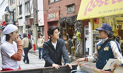 オール横須賀の映画を旗印とする「まるごと横須賀の映画をつくる会」の初作品「スカブロ」が8日、クランクインした。地元在住の矢城潤一監督がメガホンを取り、窪塚俊介さんと実弟のRUEEDさんが主演を務める。2人は便利屋を営む兄弟の役。つなぎ姿で登場し、ドブ板通りのバーなどを舞台に、矢城監督と演技の細部を確認しながら撮影を進めた。