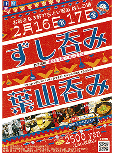 街歩きをしながらエリア内の参加店ではしご酒を楽しむ「ずし呑み 葉山呑み」が2月16日(木)と17日(金)に開催される。逗子市と葉山町の飲食店計87店が参加。各店が特別メニューを用意し、店の魅力を発信する。