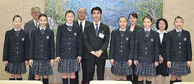 7日には、部員らが市長室を訪れた=写真。キャプテンの田中美里さんは「動きの一致が緑ヶ丘の強み。本番でも力を発揮したい」と吉田市長に活躍を誓った。