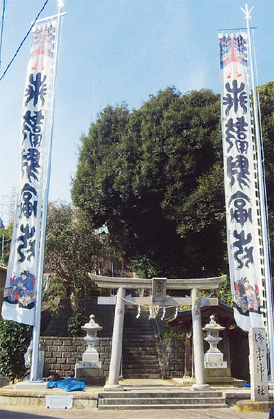 佐原の御霊神社に眠っていた2枚組の巨大幟旗が3月26日(日)に行われる祈年祭に合わせて、約50年ぶりに日の目を浴びる。幟旗には明治15年に製作されたことが記されており、幅1・2m、長さは12・5m。白髭神社(野比)にあるものなどと並び、市内でも有数の大きさと歴史を誇る。白地の布には「奉献御福前」の文字が染め抜かれており、その下には同神社の祭神、鎌倉権五郎景政と思われる人物などが描かれている。