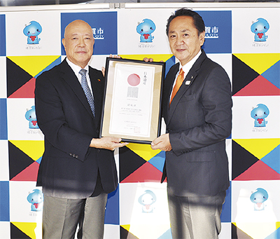 上地市長は「遺産を通じて横須賀復活に向けて頑張っていきたい」とあいさつ。荒川理事長は「市長並びに関係者に感謝」と話した。