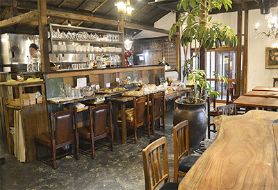 今回手掛けた店舗は、大正時代に建てられた築100年超の平屋を全面改装している。商売には不向きと思われるこの場所への出店を決めたのは裏庭にあった戦前の防空壕の存在。ワインセラーや談話ルームとしての活用などが思い浮かんだという。