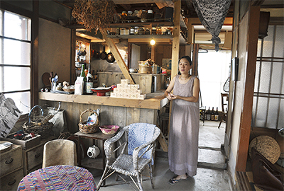都内から2年前に移住したフリーライターの清土奈々子さんは、仲間たちと母屋を改装してアートカフェ「野ざらし荘」を開設した。床をはがして昔話に登場するような土間をつくり、古民家の風情が漂うスペースを創りだした。