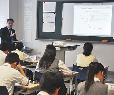 高校生が証券会社の社員から経済や金融について学ぶ特別授業が、三浦学苑高校で行われた。野村証券株式会社の横須賀支店・門井宏二郎支店長と同支店のファイナンシャル・コンサルティング課の千葉光之輔さんが講師となり、経済の基礎知識や株式の仕組みなどを学んだ。