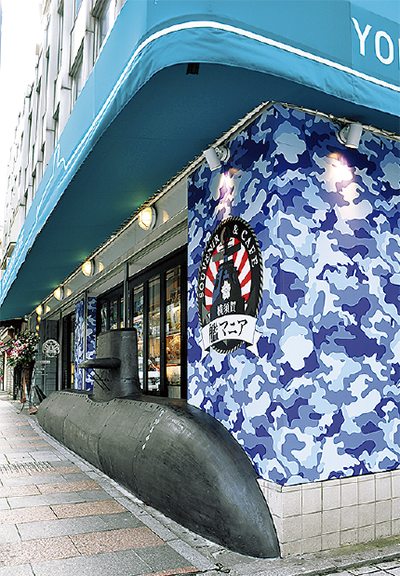 どぶ板通りの一角に、カフェ併設の土産物店「横須賀スーベニア&カフェ」がオープンした。1階では海軍カレーなどのご当地土産とオリジナルグッズを販売。2階は無料で楽しめるオンライン艦隊ゲームなどを設置し、”艦船マニア”の憩いの場として機能させる。「迷彩ソフトクリーム」「潜水艦ドッグ」などのユニークなメニューも用意している。