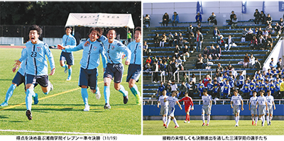 サッカーの全国高校選手権県2次予選で湘南学院と三浦学苑の両校がベスト4に勝ち上がった。先月25日に行われた準決勝では、湘南学院は桐蔭学園と、三浦学苑は桐光学園と、それぞれ対戦し惜敗。市勢同士の決勝戦は持ち越しとなった。