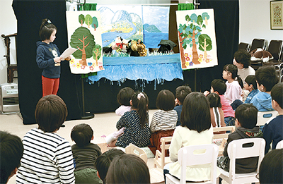 今月8日には「新年お楽しみ会」を開催。本堂での”お勤め”の後、工作や魚釣り・バスケットなどのゲームのほか、父母や指導スタッフ、小学生による「ももたろう」も観劇した=写真。手作りの劇に大喜びで「子どもの元気な声が聞こえるのはいいね」と話していた。